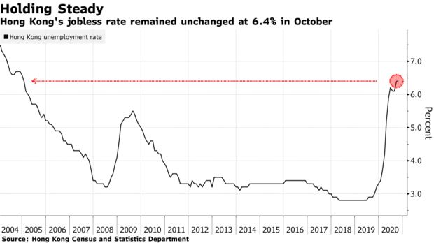 Hong Kong’s October unemployment rate held at a 15-year high