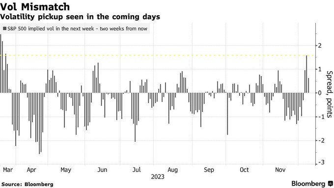 Volatility is seen as picking up during the week ahead, where we have over $100B of Treasury auctions, CPI, PPI and the FOMC decision
