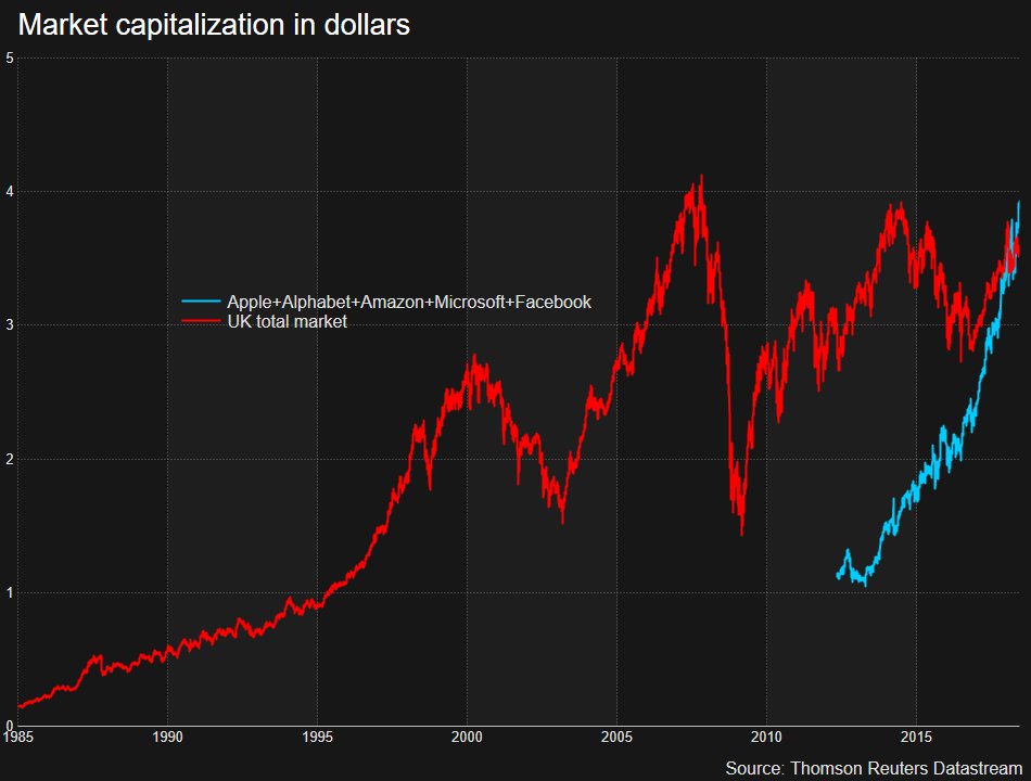 Five US stocks combined now worth more than entire UK stock market