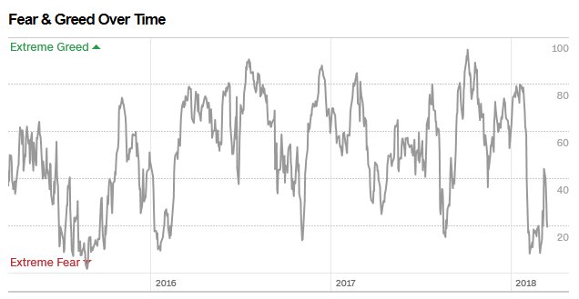 The CNN Money Fear and Greed Index is to 19 (vs 44 last week), now in the “Extreme Fear Zone”