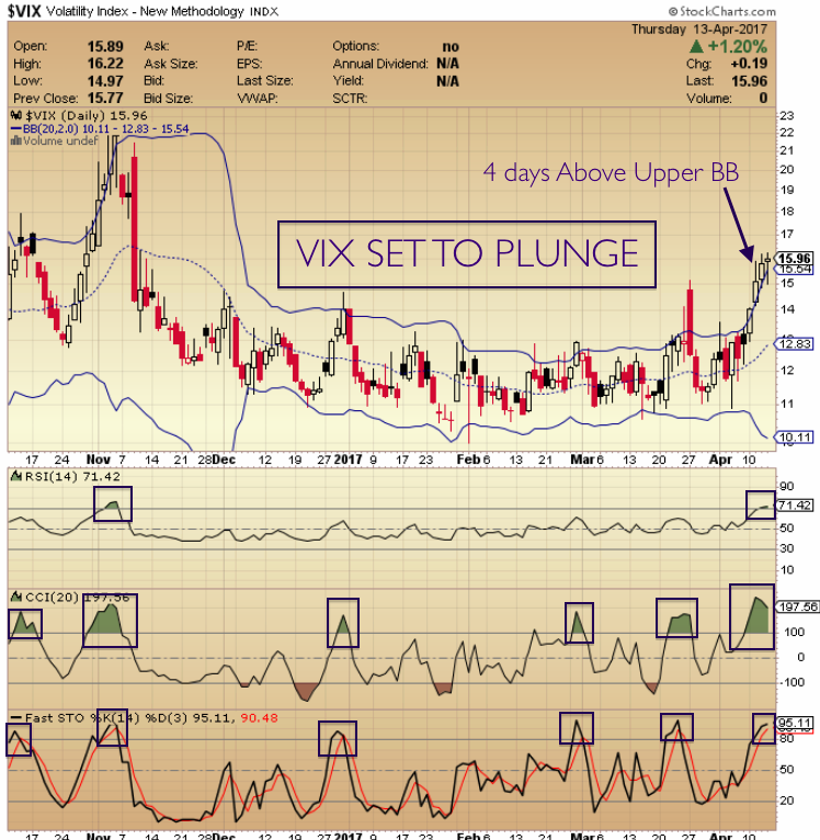 Wall Street: The VIX has been spiking. But is it too much? It's traded above its upper Bollinger Band for 4 straight days