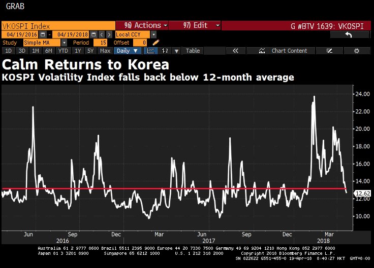 Potential bromance between Trump and Kim sends implied volatility on Korean stocks back to normal levels