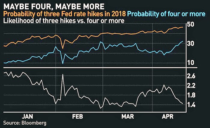 The probability of 4 Fed rate hikes this year has hit a new high, BBG says