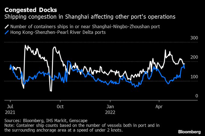 container goods moving in/out of Shanghai has declined |