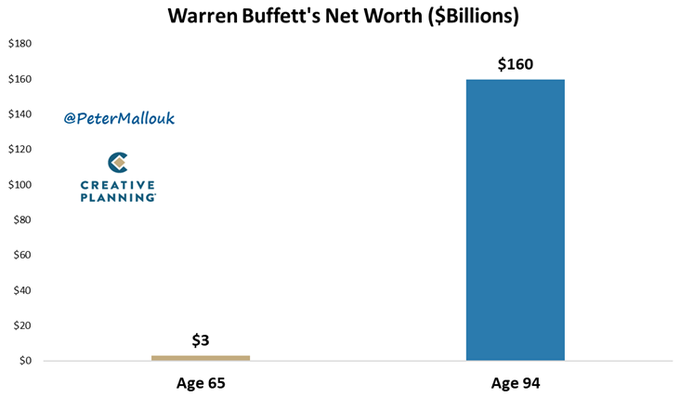 Incredible stat: 98% of Warren Buffett's current net worth of $160 billion came after he turned 65