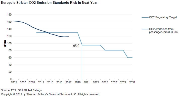S&P: European automakers' efforts to comply with EU regulation on carbon dioxide (CO2) emissions will squeeze their margins in 2019 and 2020