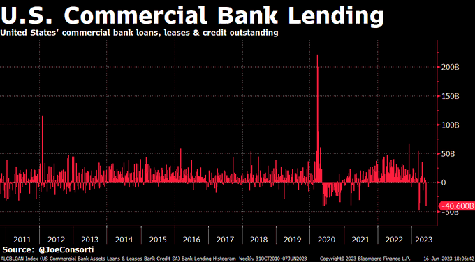 US commercial bank lending decreased by $40.6 billion this week — the second-biggest drop since the Great Financial Crisis.