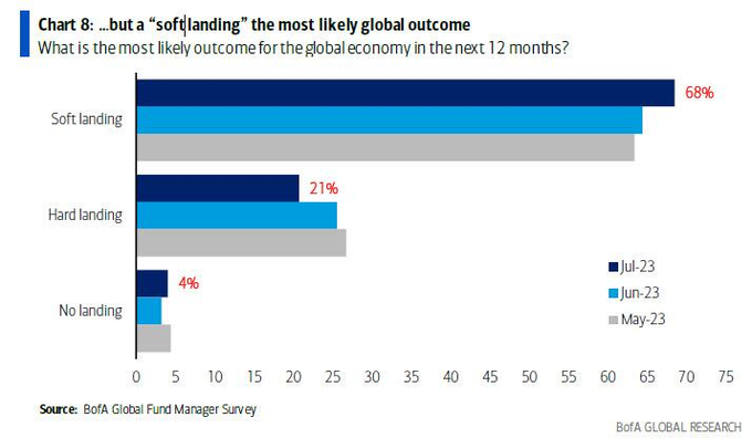 68% of fund managers surveyed by BofA in July believe that a soft landing is the most likely outcome