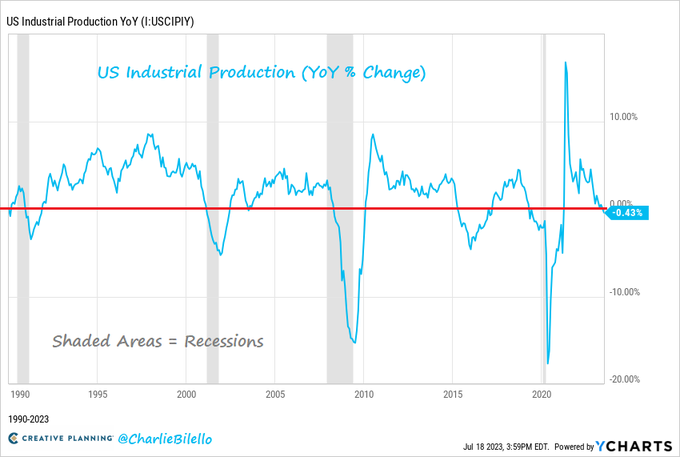 US Industrial Production has turned negative on a YoY basis for the first time since February 2021