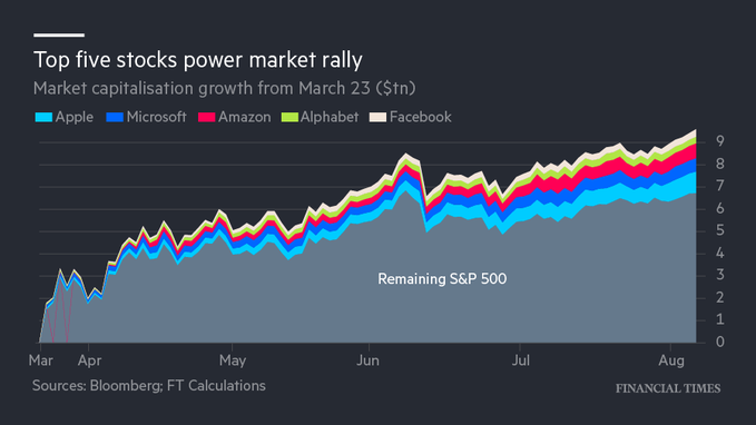Amazon, Alphabet, Apple, Microsoft and Facebook account for more than a quarter of the rally that has propelled the S&P 500 to a record