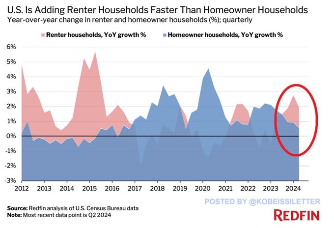The number of households renting a home increased by 1.9% year-over-year in Q2 2024, to a new record of 45.2 million, the second-largest jump since 2021
