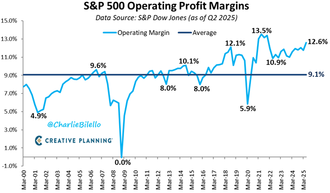 S&P 500 profit margins moved up to 12.6% in the 2nd quarter, their highest level since 2021.