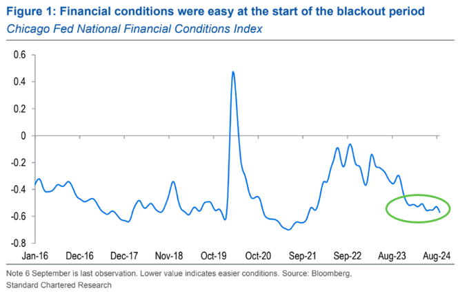Financial conditions remain ultra easy, which is one reason I don't see any need for a 50 bps cut tomorrow