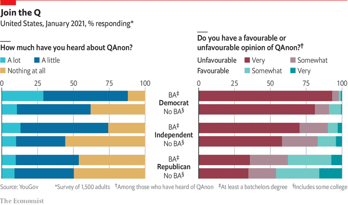 Around 30% of Republicans familiar with QAnon say they view the online movement favourably, compared with just 5% of Democrats