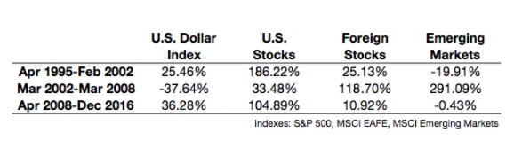 How dollar fluctuations explain the difference in returns for US stocks vs foreign stocks