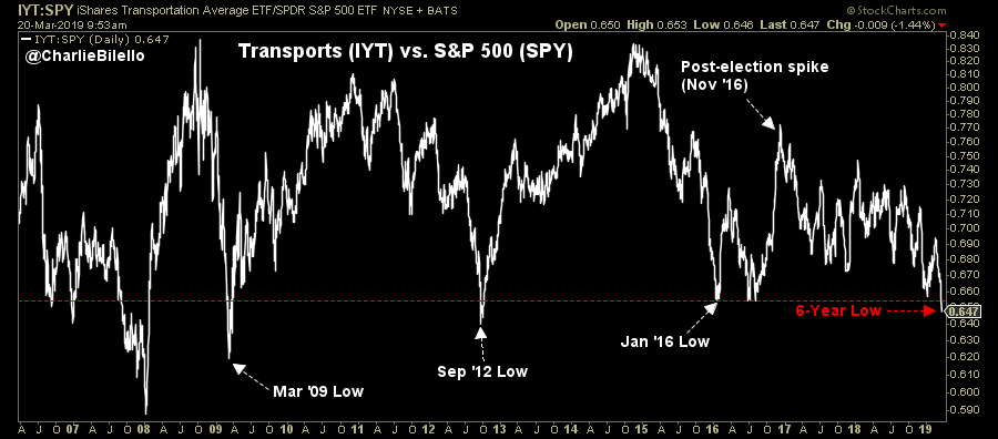 Ratio of Transports to the broad market hitting a 6-year low today