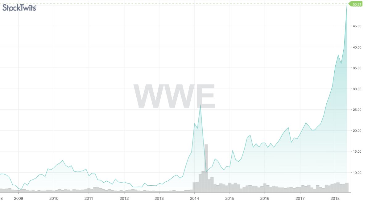 This is WWE right now. It's at ALL-TME highs. It's also now up 157% over the last year