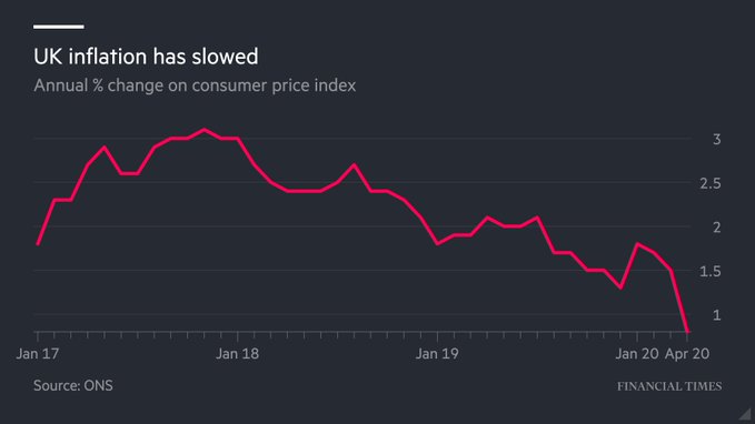 UK inflation dropped to the lowest rate in almost four years, reflecting lower energy prices and weakening demand during the coronavirus pandemic