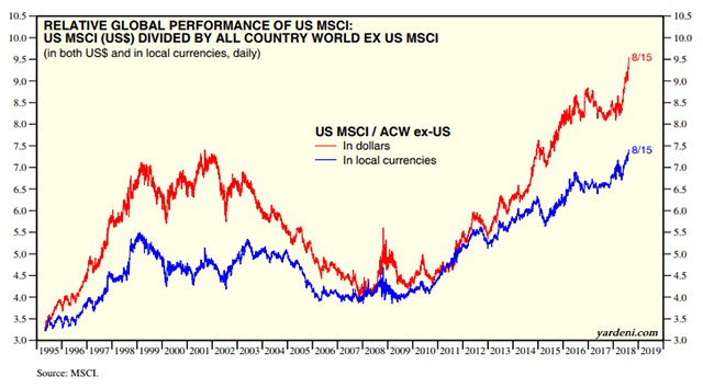 U.S. stocks have done even better against major overseas stock indexes priced in local currency so far this year