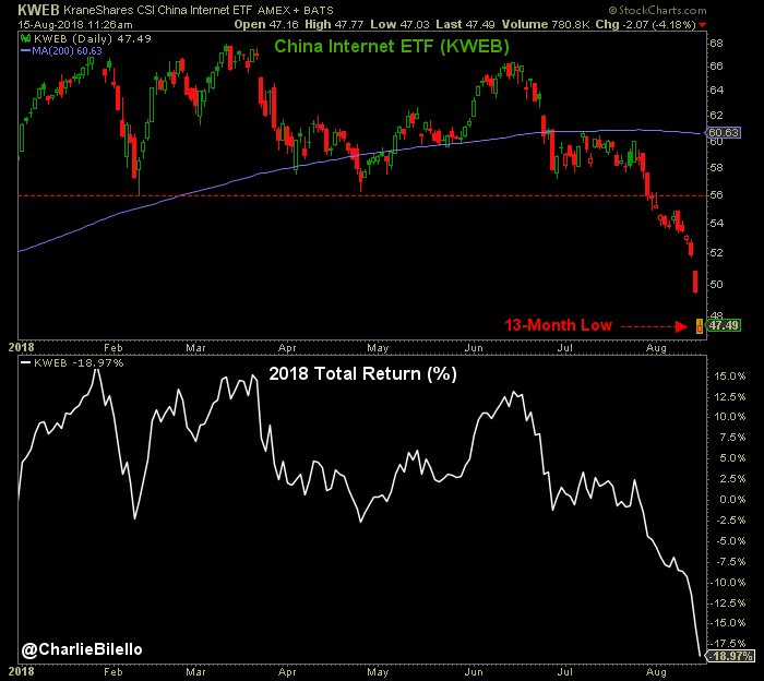 Chinese Internet stocks hitting a 13-month low, down 20% year-to-date and 31% from their January high