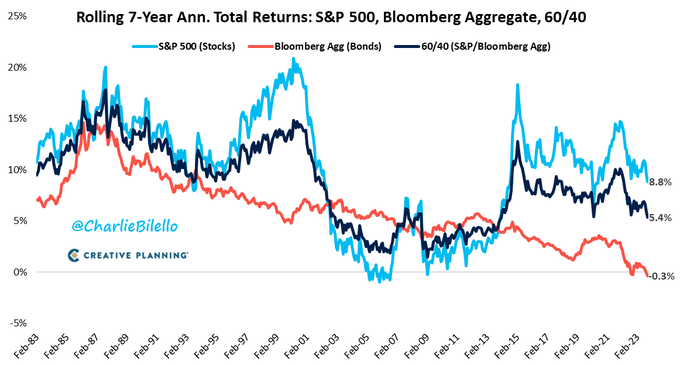 Bonds have been a negative contributor to the 60/40 portfolio over the last 7 years...