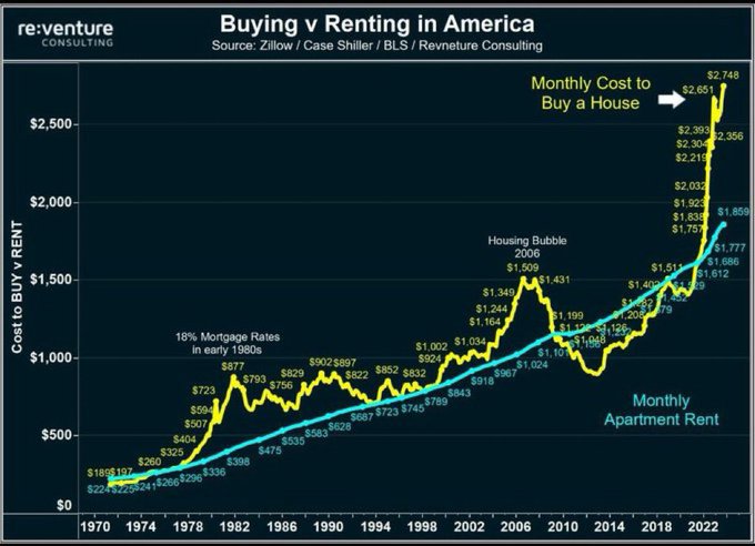 The gap between the monthly cost to buy a house and monthly apartment rent is the highest on record