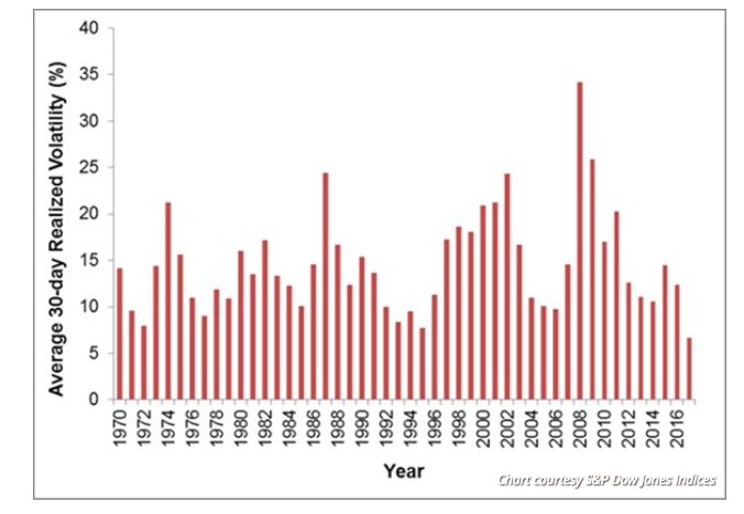 U.S. stocks shrugged off all manner of political and economic uncertainty over the past 12 months, demonstrating basically nothing in the way of volatility