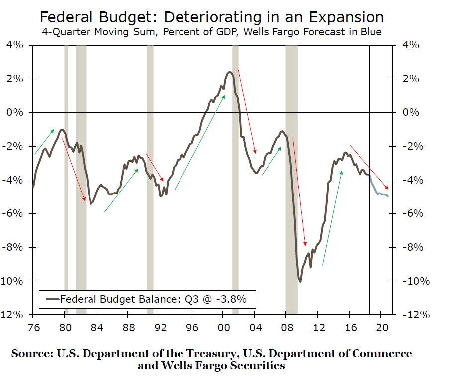 Τhe U.S. budget deficit usually expands as the economy deteriorates. This time the budget's deteriorating as the economy expands