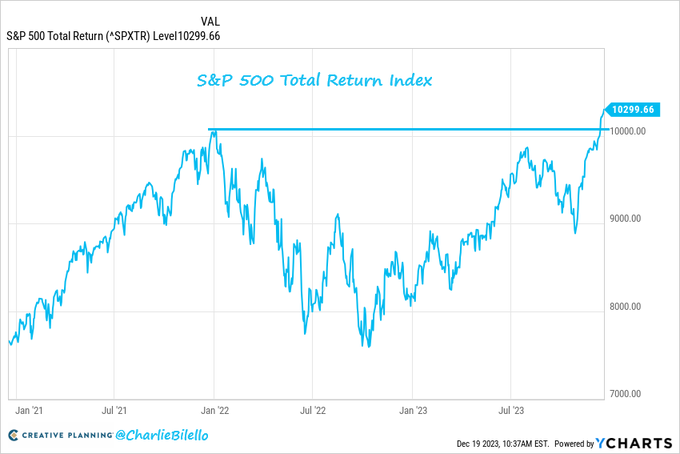 The S&P 500 total return index is on pace to hit a monthly closing high for the first time since December 2021