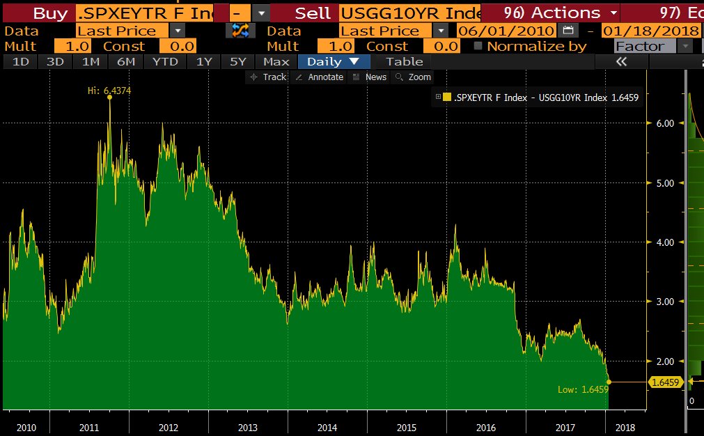 of S&P 500 stocks versus 10-year Treasuries since 2010. This