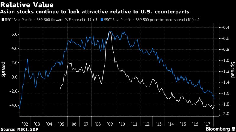 are at their cheapest relative to their U.S. peers in years