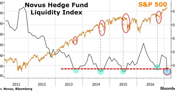 Hedge Fund Liquidity Plunges To "Danger Zone" For US Stocks