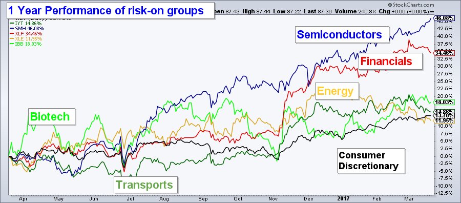 The blue line shows the semiconductor index. Think NVDA, MU, and INTC
