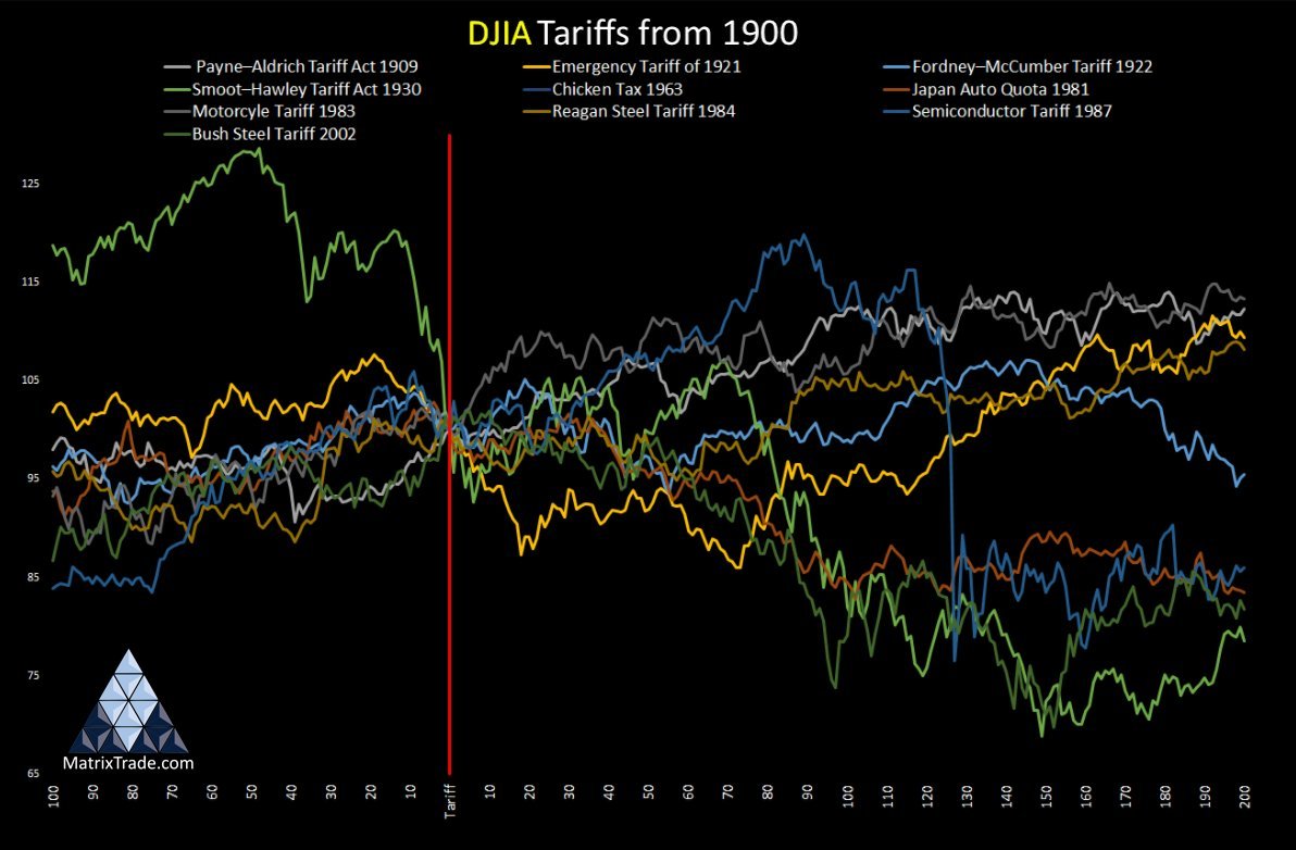 Here's every major tariff since the 1900 and what the Dow Jones Industrial Average did before and after