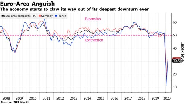 The euro-area economy starts to claw its way out of its