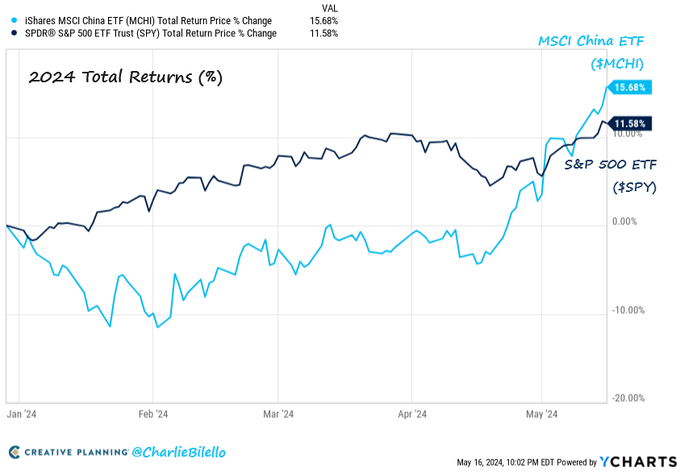 The MSCI China ETF is now outperforming the S&P 500 on the