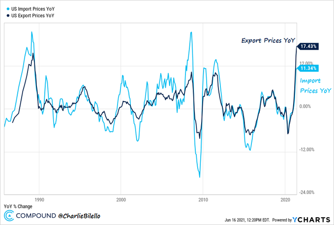 US Export Prices increased 17.4% over the last year, the highest increase on record