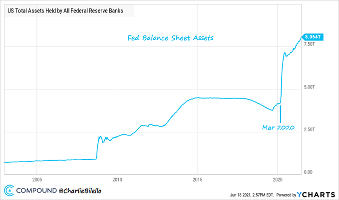 The Fed's Balance crossed above $8 trillion this week for the first time. Two years ago it was under $4 trillion