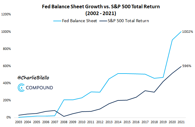 Fed Balance Sheet growth vs. S&P 500 Total Returns since the end of 2002...