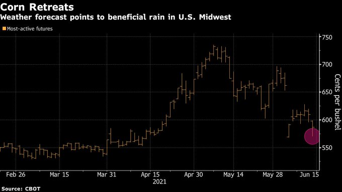 Corn dropped near the lowest since mid-April and soybeans slipped