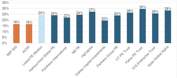 Since 1987, private equity funds have been publicly listed and traded on the LSE. We can compare directly the volatility of the traded funds to the listed NAVs, and get a real-life example of just how private equity assets trade when they are listed publicly