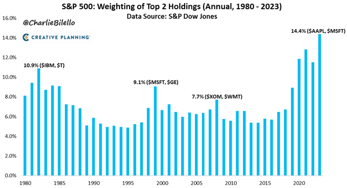The top 2 stocks in the S&P 500 (Apple & Microsoft) now