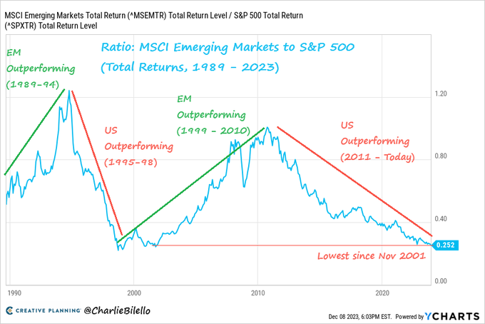 of Emerging Markets to US Equities hit a 22-year low this