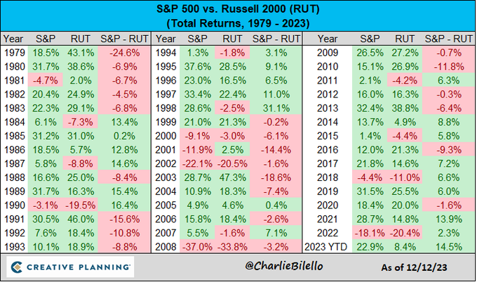 Large Caps (S&P 500) are outperforming Small Caps (Russell