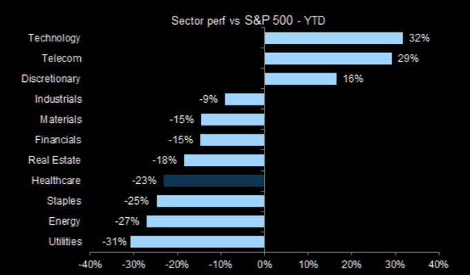 Healthcare underperformed the S&P 500 by the most in 30