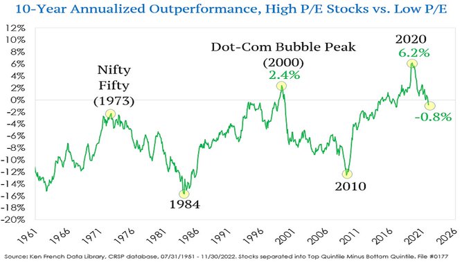 The 20% of stocks with the Highest P/E beat the 20% with the