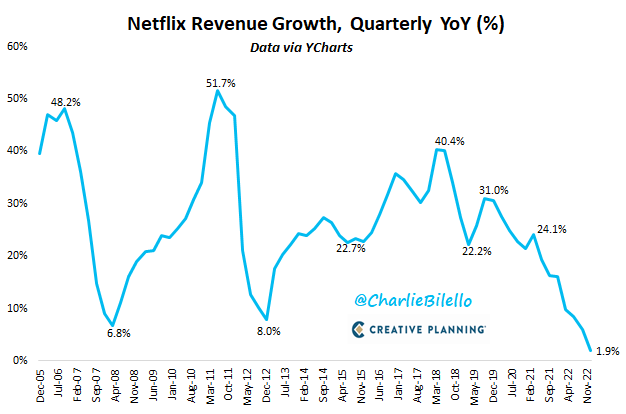 Netflix Q4 revenues were up 1.9% over the prior year, the