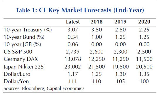 Capital Economics sees 10Y hitting 3.50% by year end then tumbling to 2.25% by 2020 as stocks and dollar slide