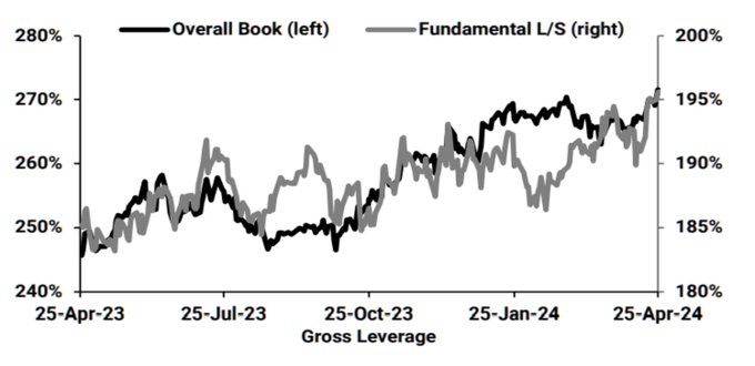 Hedge fund gross leverage is nearing highs around 270%, an