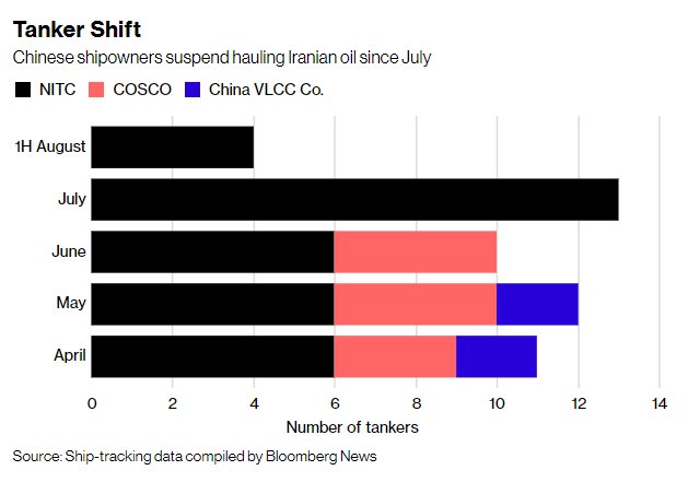 China’s shipowners are shunning Iran’s oil, while the OPEC producer is using its own tankers to supply customers ahead of U.S. sanctions